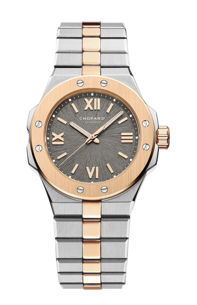 That’s a great question. I own two Chopard watches: a Mille Miglia GMT limited edition and a St Moritz, the predecessor to the Alpine Eagle. My Mille Miglia is from 2012. Today, I’m wearing a beautiful L.U.C. Perpetual T made of ethical gold and titanium, featuring a calibre developed and produced by Chopard with a golden micro-rotor.