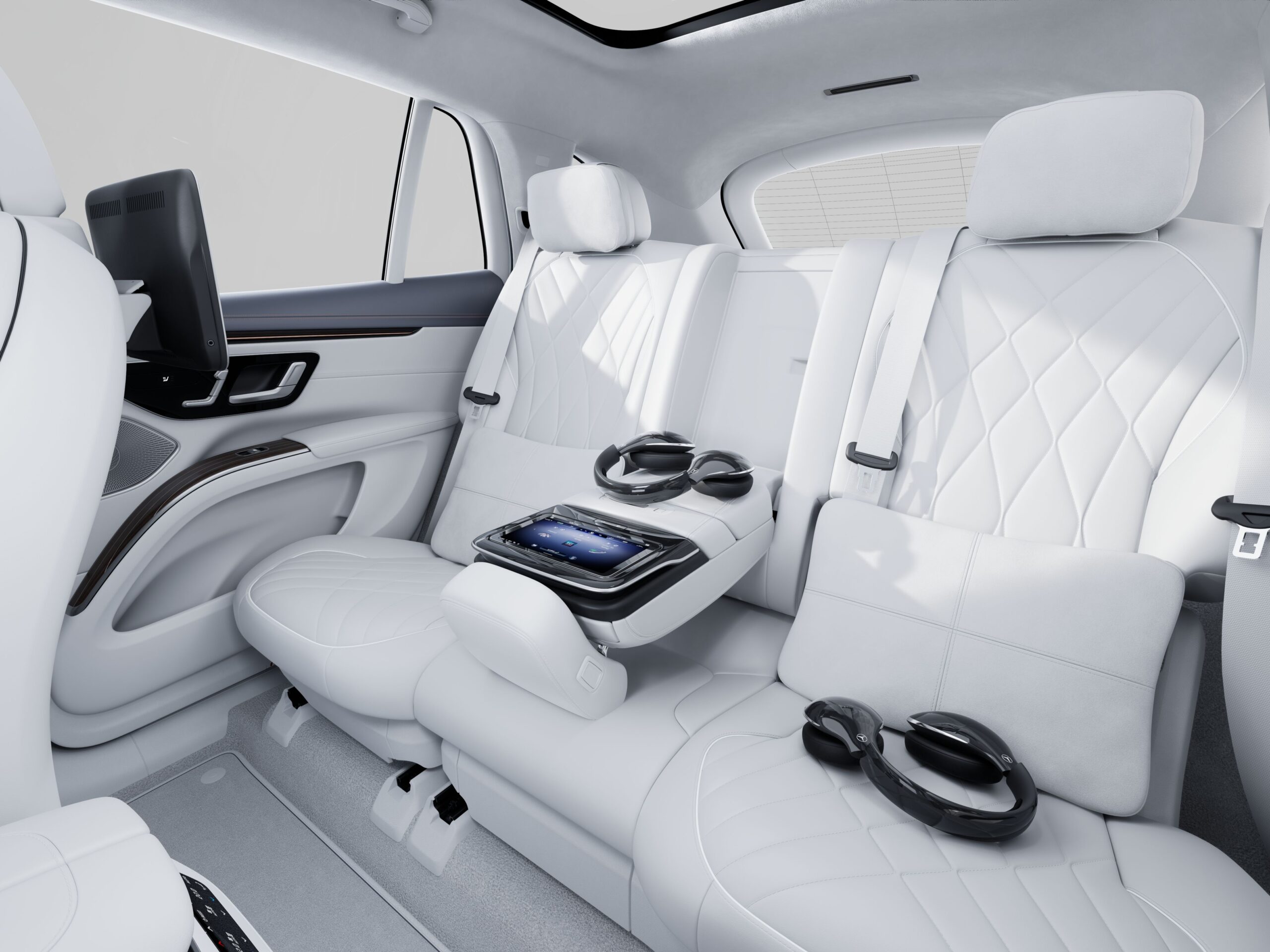As you’d expect, the EQS SUV 580 is lined with high-quality materials and thoughtful conveniences. The plushness is evident, and the generous rear-seat entertainment setup—complete with screens mounted on the front seat backs, wireless noise-canceling headphones, and a tablet controller—doesn’t skimp on modern tech. It helps the rear-seat passengers to completely isolate from the front infotainment. The ride quality also complements the experience really well.