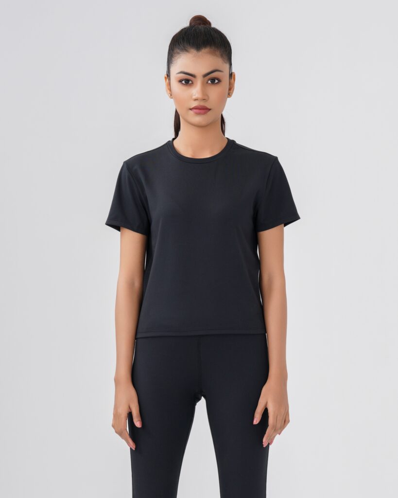 Softly structured and effortlessly wearable, this versatile t-shirt is an everyday essential. Made with breathable fabric and a flattering fit, it’s perfect for layering over your activewear or wearing on its own.