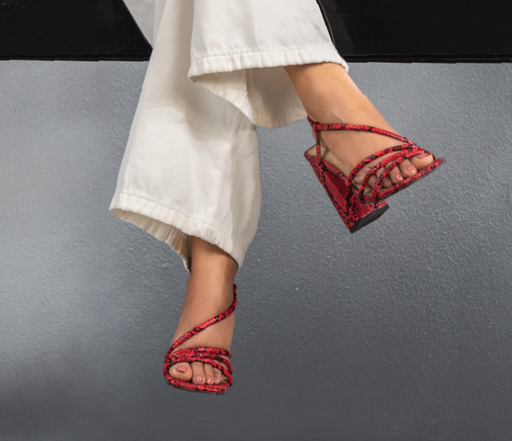 These red- hot ankle-strap heels are designed for the woman who loves to stand out. Their sharp pointed silhouette and elegant straps exude confidence and femininity. Perfect for adding a pop of bold glamour to both evening wear and chic day looks, they’re a must-have for anyone who isn’t afraid to be noticed.